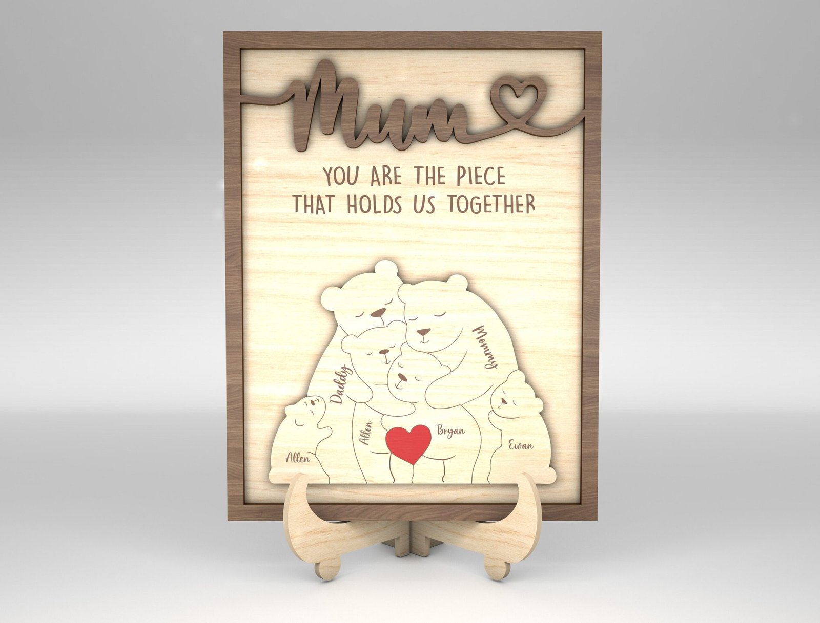 Capture the warmth of your family in a beautiful and customizable digital design with our Personalized Family Puzzle Sign SVG Bear. This downloadable SVG file is ideal for Cricut, Silhouette, and other cutting machines. Whether you’re creating a heartfelt gift, wall décor, or a keepsake sign, this puzzle-style bear layout lets you add individual names, making each piece of the bear represent a beloved family member. Perfect for Mother’s Day, Father’s Day, housewarming gifts, or just because—you’ll be turning pixels into precious memories in minutes.